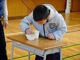 きれいなお箸の使い方ができるようになることをねらって、事前に予告し、練習期間を設けていました。お箸を使って豆をつかみ、別の容器に移し替える、それをリレー方式でしたものです。