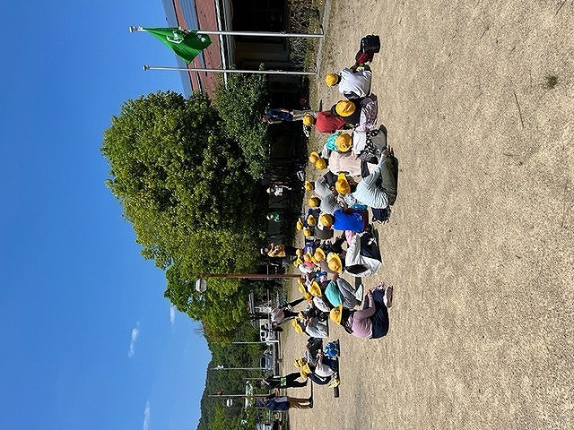5月24日(火)昼食が終わり入所式です。所員さんの話を聞き、自然の家に入ります。次はペットボトルランタン作りです。
