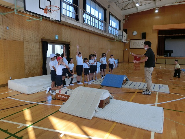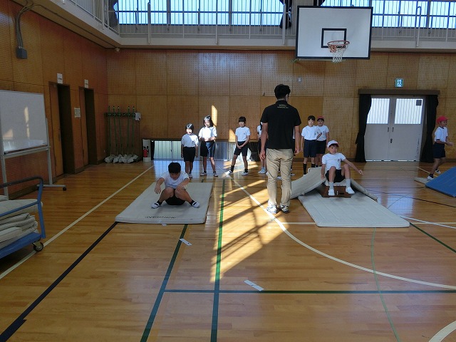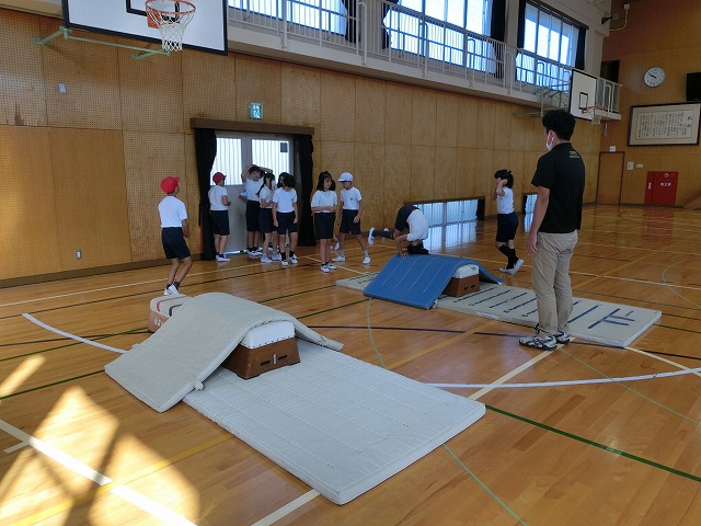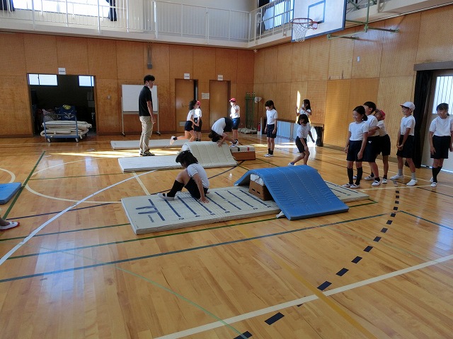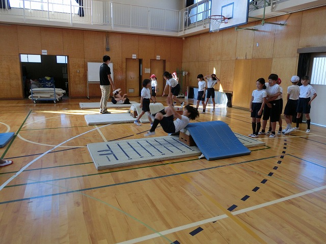 10月31日(月)4年生は久しぶりに体育で跳び箱運動を行いました。今日は台上前転がどれくらいできるか確認した後、それぞれに合った場所で練習をしました。ポイントの「マットにつく頭の部分」に注意しながら頑張って練習していました。