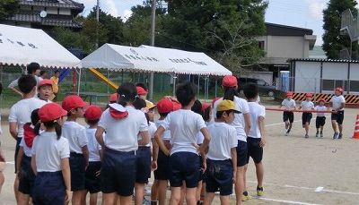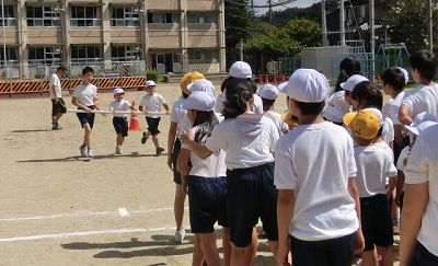 9月12日(金)の2校時に児童会種目「台風の目」の練習をしました。