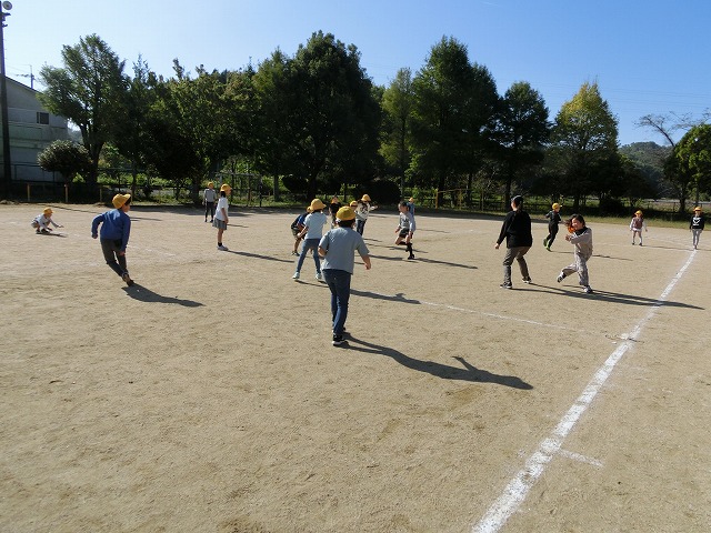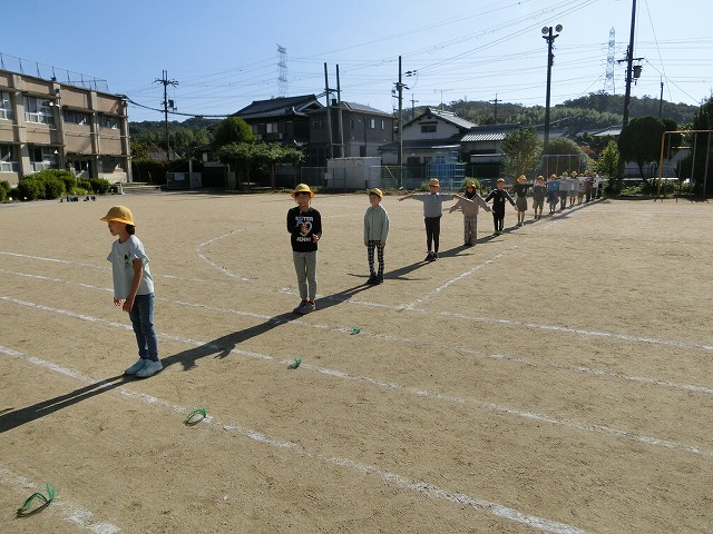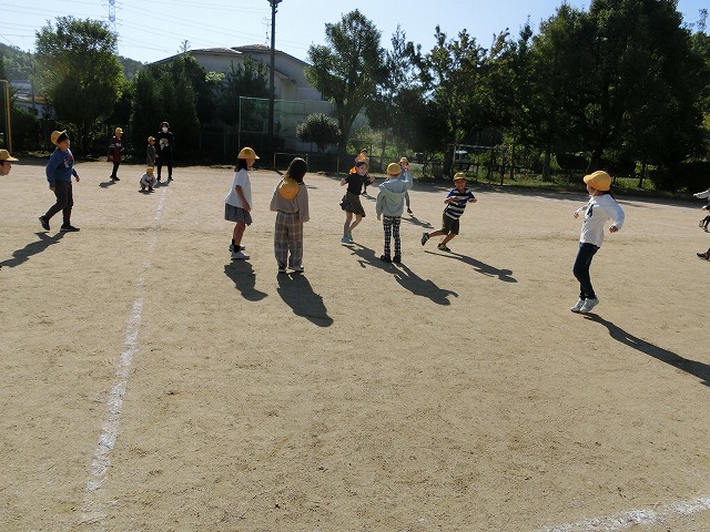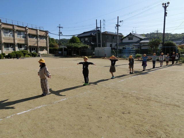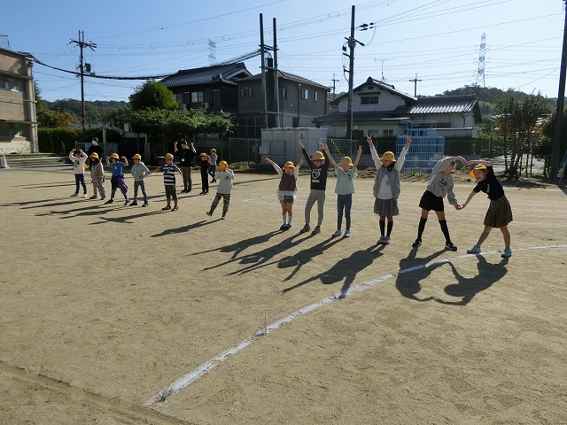 10月18日(水)3年生は今理科で「太陽と影」の勉強をしています。今日はその学習の一環で、「影おくり」や「影つなぎ」「影ふみおに」をしながら太陽と影について楽しく学習しました。