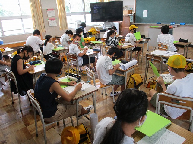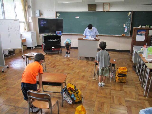 7月20日(水)終業式、大掃除を行いました。終業式は、1・3・5年生は体育館で、2・4・6年生は各教室(Zoom)から参加しました。校長先生からは「生活リズムを崩さないよう、自分で自分の心にチャイムを鳴らそう」というお話がありました。
