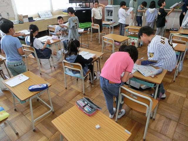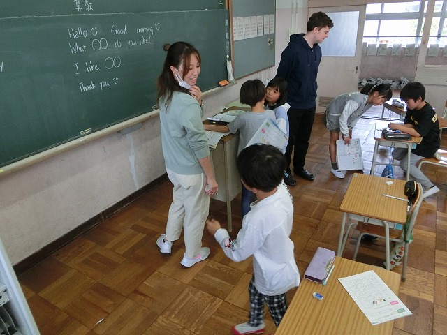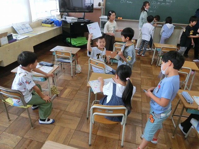 11月6日(月)3年生は山本先生とピーター先生と外国語活動に取り組みました。今日はたくさんの友だちに何が好きかを尋ね合いました。10人以上の人とお話した子もいて、とても楽しく活動していました。