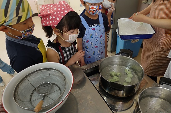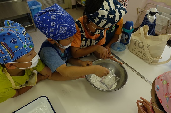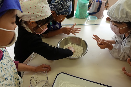 子どもたちは「混ぜるの楽しい」「なんかもちもちしてる」「粘土みたい」など様々な感想を口にしていました。完成した団子を食べると、「おいしい!」という声を聴くことができました。