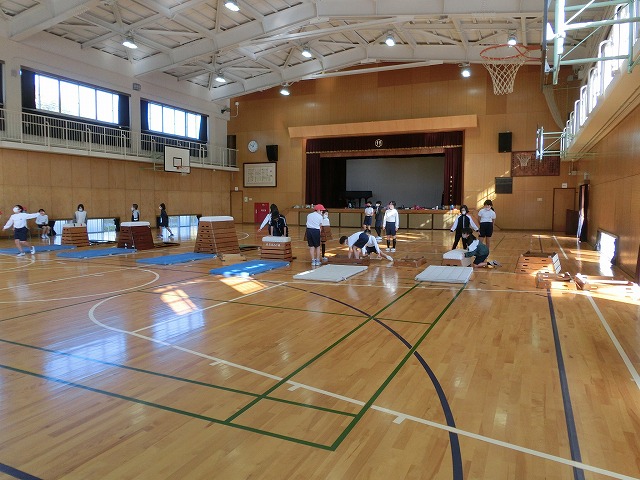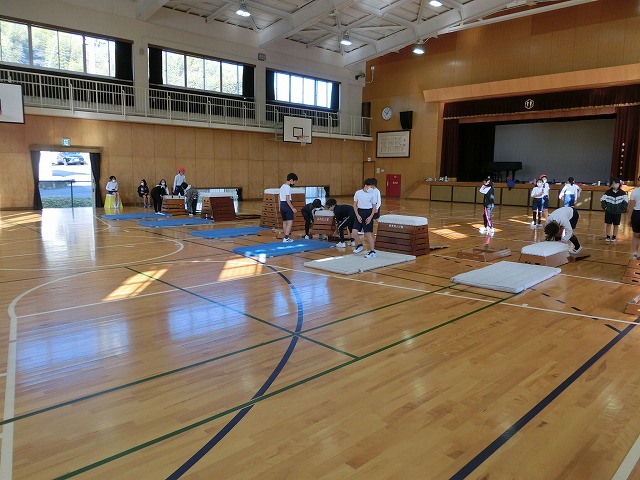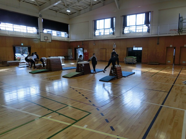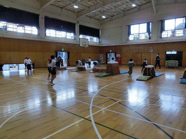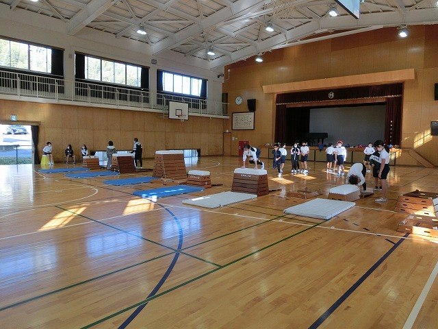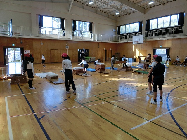12月12日(月)2学期も学期末に近づていく中、2時間目に4年生が体育館で跳び箱運動に取り組みました。みんなで協力しながら跳び箱の高さや向きを変えて、様々な跳び方を練習していました。今まで練習してきた成果を発表するコーナーもあり、みんな一生懸命に動き回っていました。