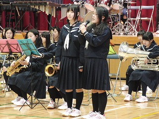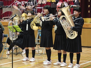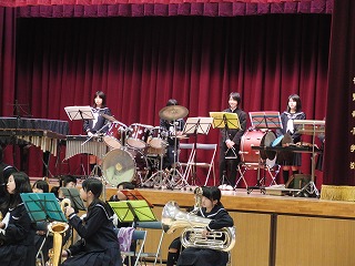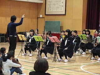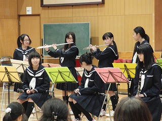 今年度は初めての試みとして、田辺中学校吹奏楽部に来て頂き「音楽の集い」を行いました。