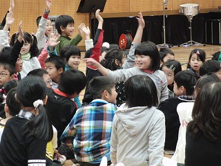 素晴らしい演奏はもちろんのこと、曲当てクイズや楽器演奏体験、マーチングのDVD鑑賞と盛りだくさんの内容で、特に楽器演奏体験は大盛況で、自分のお目当ての楽器に実際に触れ、音を出す事ができ、子どもたちは大満足の様子でした。