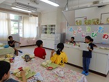 4月5月に誕生日を迎えたお友だちは、家庭科室に集まります。「体育・給食委員会」が準備をし、当日の進行を行います。手作りのプレゼントも用意して渡します。