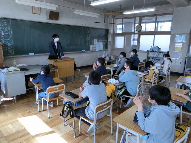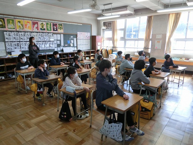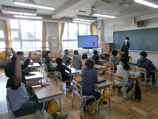 3月16日(木)今日の5時間目に普賢寺小学校OBの伊東さんに来校いただき、5年生で防災学習(地震)を行いました。地震の起こるメカニズムや、なぜ日本には地震が多く起こるのかなどについてイラストや図を使いながら分かりやすく説明してくださいました。