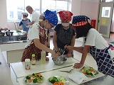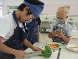 ニンジンやピーマンを切ったり、油でいためたり・・・