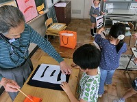 今日は筆の持ち方を学習した後、漢字の「一」と「二」を練習しました。(写真上)
