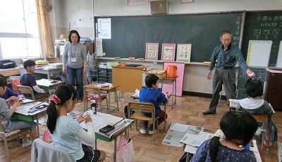 5月9日(金)、3年生は地元の辻尾仁郎先生から習字を教わりました。2回目です。