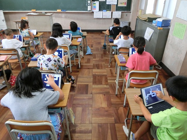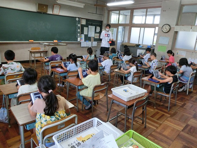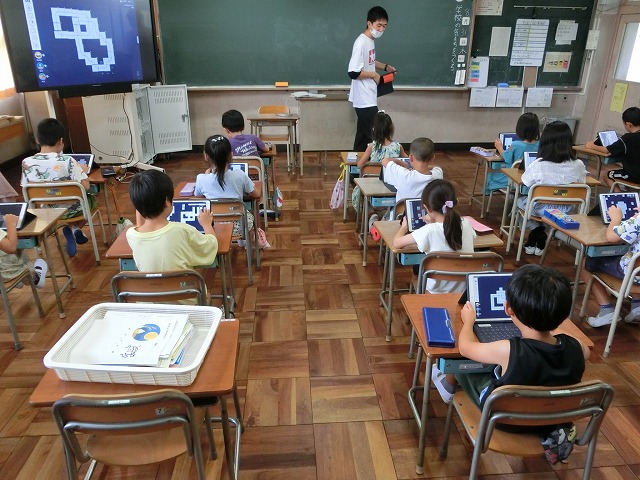 8月31日(木)2年生の教室に入ると、子どもたちがタブレットに集中して、算数科の一筆書きの学習につながる線路のパズルをやっていました。「先生、見て見て」といろんな形の線路を見せてくれました。