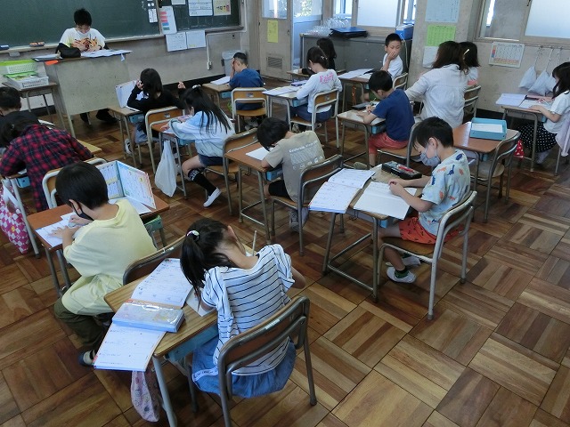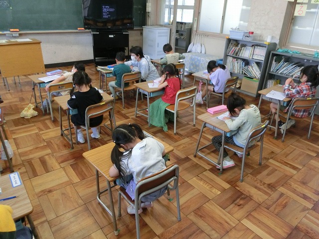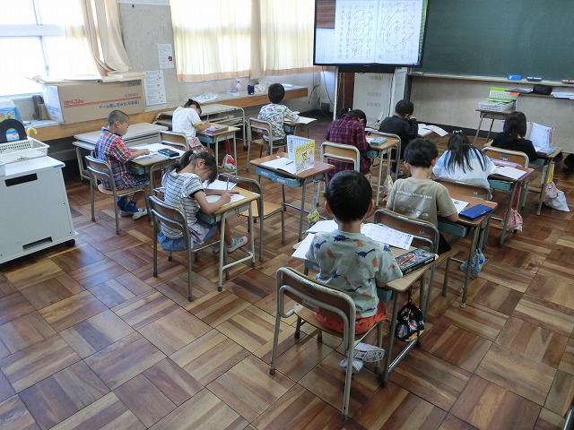 5月11日(木)今日の1時間目は、両学年とも国語でした。1年生は「ふ」の字の練習を、2年生は漢字の練習にそれぞれ取り組みました。
