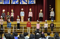 1・2年の「おむすびころりん」です。場面の移動がスムーズで、歌とせりふがはっきり聞こえ、お話が大変良くわかりました。