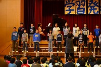 全校合唱、「歌はぼくらの友だち」「夢はともだち」です。美しく響く声に会場はつつまれました。
