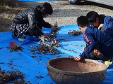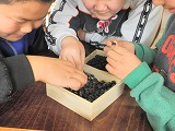 5・6年生が、黒豆をさやから出して選別する作業をしました。