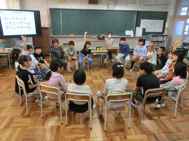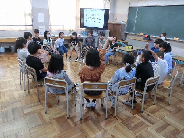 11月7日(火)4年生は、行事後のお楽しみ会でやりたいことについて話し合いました。今日はあえて司会などを決めずに話し合いを始めると、次第にみんなで椅子を持ち寄り円になったり、司会風な子が自然と出てきて話し合いを上手に進めたり、3つに絞られた内容をさらに絞り込むために「理由」を付け足して自分の考えを発表したり…、なんとも微笑ましい4年生の子どもたちです。