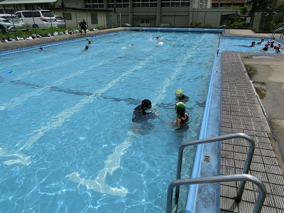 今日も2年生は大河内先生と楽しく水に親しみ、3・4年生は泳力に応じたクラス分けで練習をしました。4回目ということで水に対する抵抗がなくなり、のびやかなフォームで泳ぐことができる子どもたちが増えてきました。2・3・4年生も水泳学習はあと残り1回となりました。週末ゆっくり休んで、来週からも楽しくがんばりましょう。