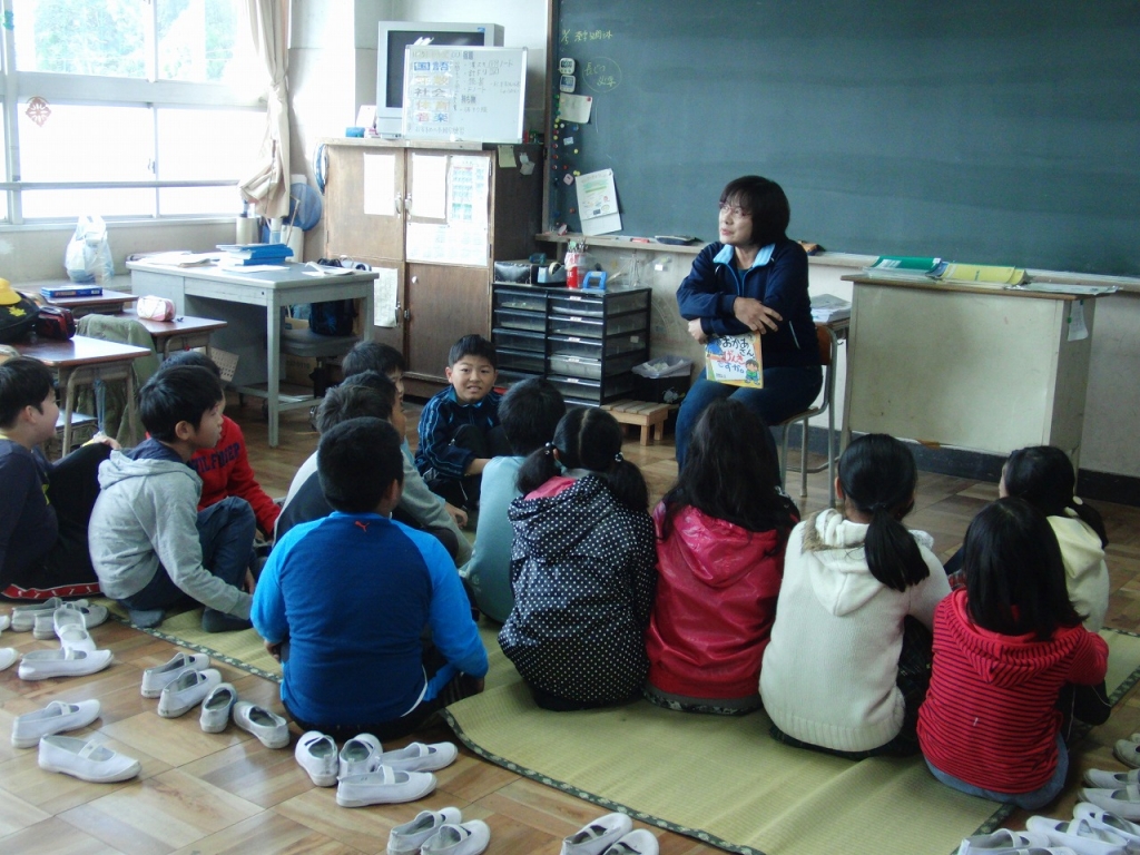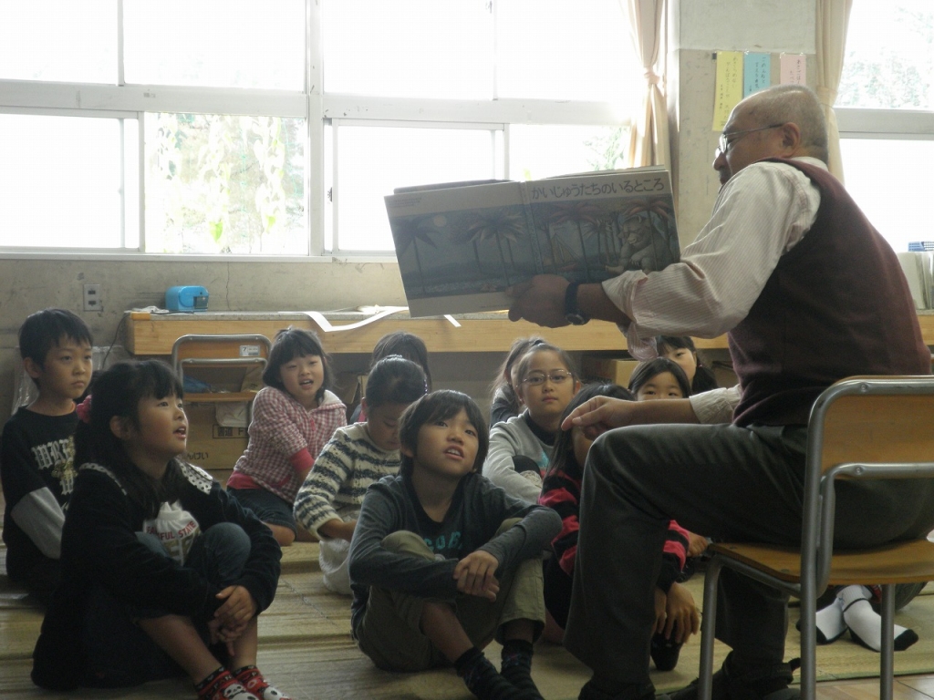 担任ではなく、他の学年の教員による読み聞かせです。