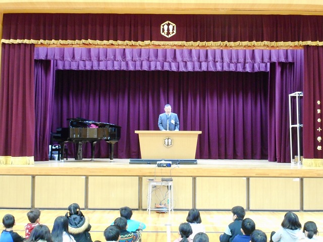 1月9日(火)第3学期が始まり、始業式を行いました。児童だれ一人の欠席もなく、全員元気に出席した中で式を行い、校長から「きらきら3学期」として、ひとりひとりの頑張りを「きらきら」輝かせようと話しました。また、1月の生活目標の「ありがとうの気持ちを持とう」についての話を担当の教職員から行いました。3学期も精一杯がんばりましょう。