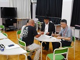 今年度の委員の紹介、規約・組織・年間予定の確認を行ったあと、夏に予定している「教職員との合同研修会」と「地域学習プログラム」についてグループ協議を行いました。