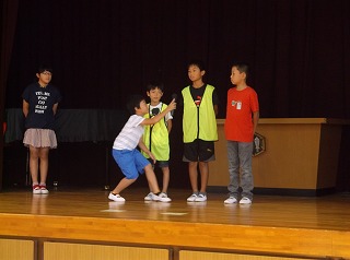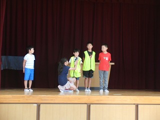9月27日(水)児童朝礼を行いました。この日は5年生児童が「あいさつ運動」について発表しました。朝礼で、全校児童に対して、あいさつの大切さを劇を通して訴えるとともに、毎朝登校する児童に対して、校門付近であいさつ運動を行う取組を発表し、協力を求めました。5年生は6年生と共に10月3日からあいさつ運動を行う予定にしています。