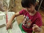 そらまめのふわふわのベッド(さや)に実際に触れることができて大喜び。