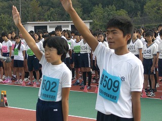 開会式では市内の6年生を代表して、宮嵜哲平君と岡西亜衣さんが選手宣誓を行いました。堂々としたすばらしい宣誓でした。