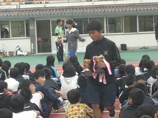 そんな中、宮嵜哲平君が50mと50mハードルでみごと優勝!!優勝カップを2つ持ち帰ることができました。
