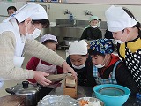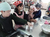 食改さん手作りの減塩みそに、普賢寺小で採れたさつまいもや玉ねぎも入った