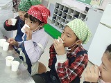 だしのとり方や、だしの種類を学習した後は、味覚を研ぎ澄まして「飲み比べゲーム」です。