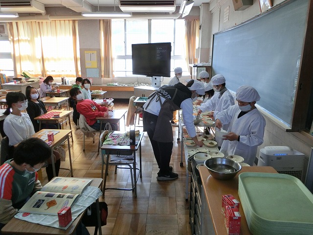 1月12日(木)今日から3学期の給食が始まりました。今日の献立は、《正月献立1》ということで、京風雑煮・紅白なます・ごまめでした。新学期から3日目が過ぎ、少し疲れがたまってくる頃ですが、給食をしっかり食べて元気に過ごしましょう。