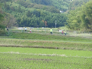 中間休み(10:25~10:45)に実際のマラソンコースの一部(学校南西の農免道路)を走っています。