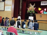 今日から普賢寺小学校の1年生です。先輩のお兄さん、お姉さんたちと一緒になって、創立141年目を迎える普賢寺小学校に、新しい歴史を創ってくれることを希望しています。