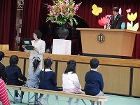 期待と希望を胸に、ピカピカの1年生16名が元気に入学しました。在校生を代表して、児童会運営委員の6年武村陽和さんと2年生が歓迎の言葉を述べました。