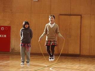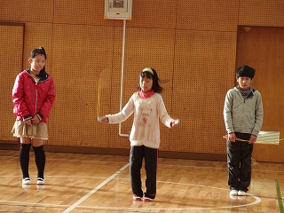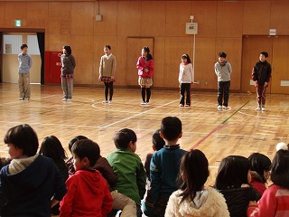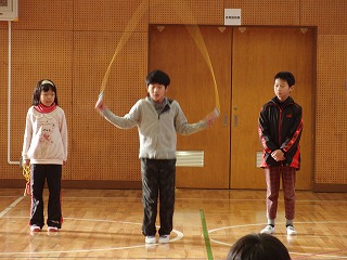 先日20日(金)の終業式のあと、体育委員と有志による短縄跳びのデモンストレーションが行われました。