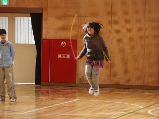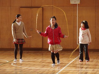 普賢寺小学校では毎年、冬の体力作りのために縄跳びの取組を行っています。