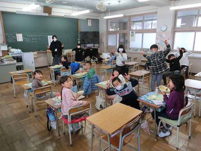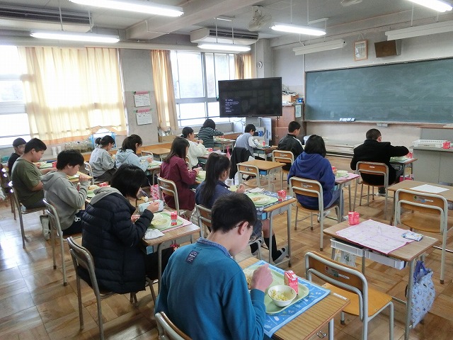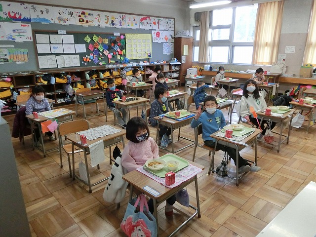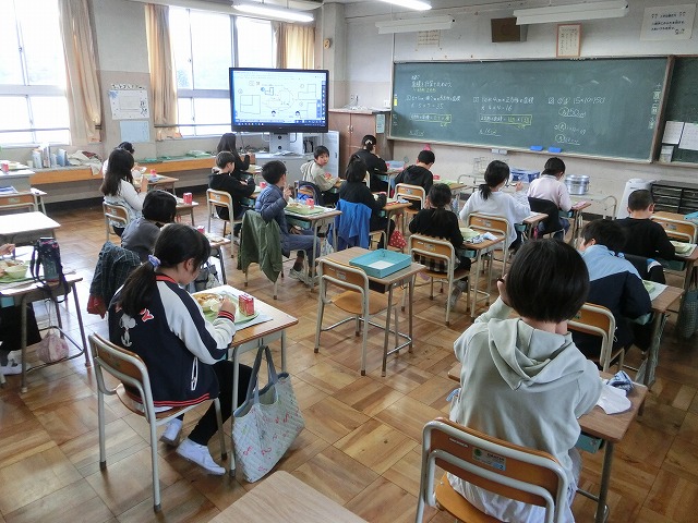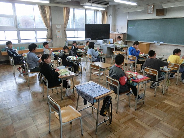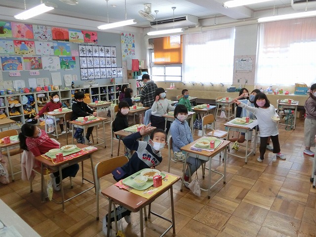 12月14日(水)今日の給食は≪いい歯の日献立≫ということで、献立にカミカミカレーが出ました。カミカミカレーの『カミカミ』の部分は、ごぼう・れんこんン等の歯ごたえのある野菜がたっぷり入っているという意味です。子どもたちは大好きなカレーをたくさんいただきました。今年の給食はあと2回です、味わって感謝していただきましょう。