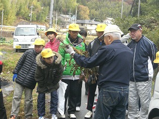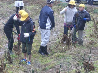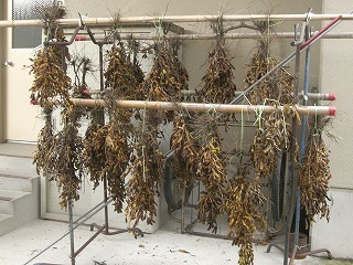 収穫した黒豆は学校に持ち帰り、体育館横に干して乾燥させ、年明けにサヤから豆を取り出します。この作業は5・6年合同で行い、来年「畑の学校」で黒豆を育てる5年生に引き継がれます。