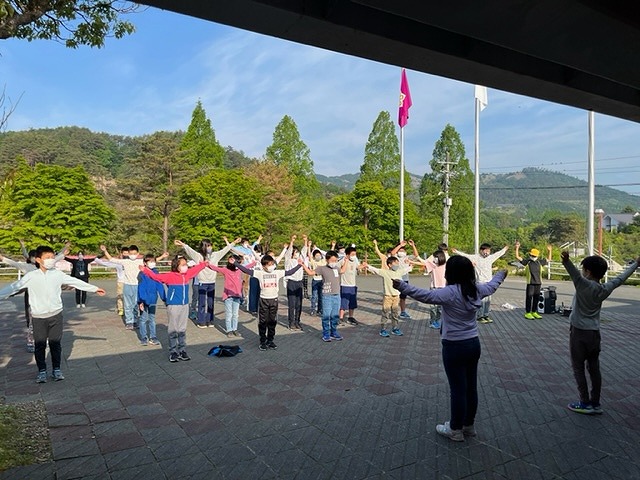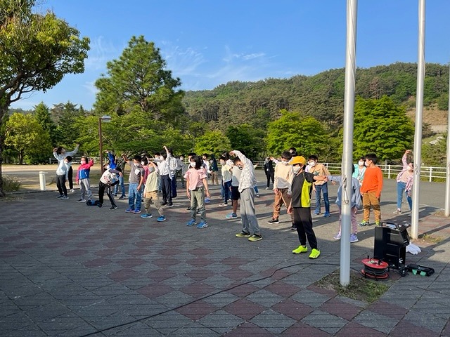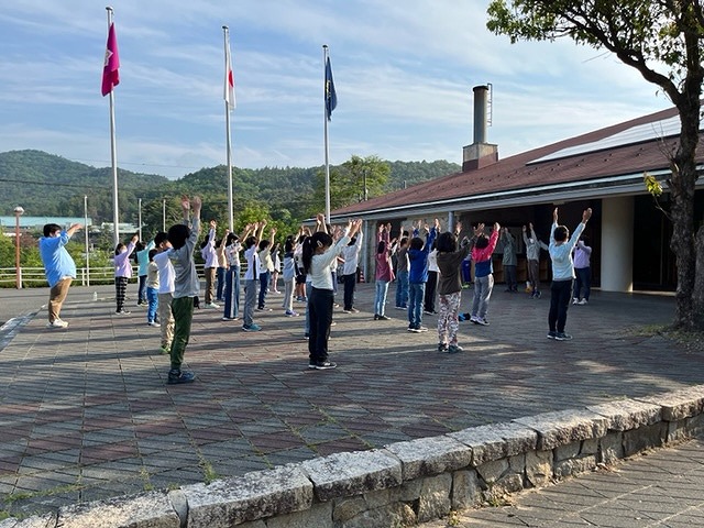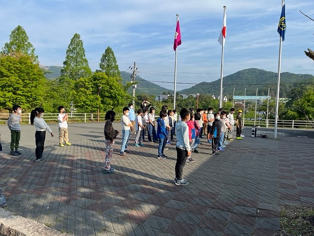 5月25日(水)林間学習2日目、全員元気に朝をむかえました。朝の集いのあと、自然の家の清掃をして朝食です。今日はクイズラリーがあります。みんんがで協力してゴールを目指しましょう。