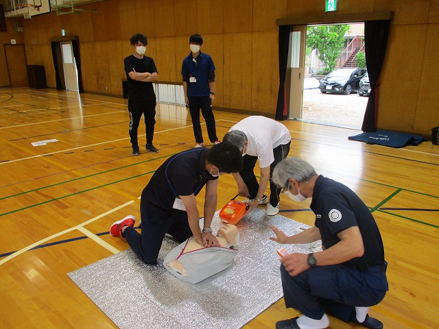 放課後には職員が救急救命講習を受けました。6月22日から水泳学習が始まります。安全に進められるよう、指導をしていきます。