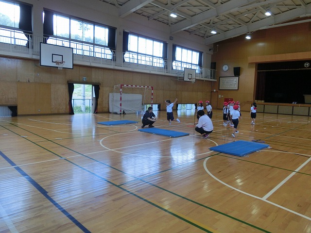 1年生は体育「とぶうんどうあそび」で、今日はゴムを使って跳ぶ練習をしました。自分が跳ぶ時はゴムに引っかからないように集中して、友だちのがんばる姿もしっかり見ながら、一生懸命身体を動かしました。