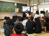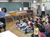 低学年、中学年、高学年に分かれ、それぞれの教室で読み聞かせを聞きました。