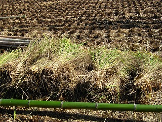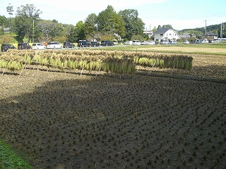 束ねた稲を運び、竹で組んだ『ならし』(『うま』とも言います)にかけました。