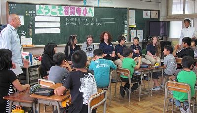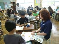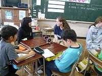 教室ではグループに分かれて、自己紹介の方法や誕生日の聞き方、答え方などを教わりながら、楽しく交流しました。(*^_^*)
