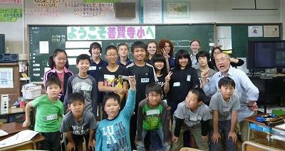 同志社国際中高校にアメリカから留学している生徒6人が10日(金)、本校を訪れ、6年生の外国語活動に参加しました。