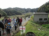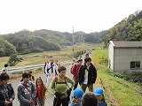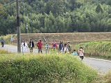霜の降りる寒い朝でしたが、約150名の参加者の皆さんは、元気よく学校を出発しました。途中、クイズに答えながらお昼ご飯の場所まで歩きます。