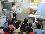 体重・身長をはかる前に、養護教諭が保健指導を行いました。
