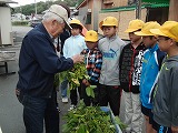 6年生が山下壽一さん、田宮正雄さんに教えていただきながら育てていた黒枝豆を、